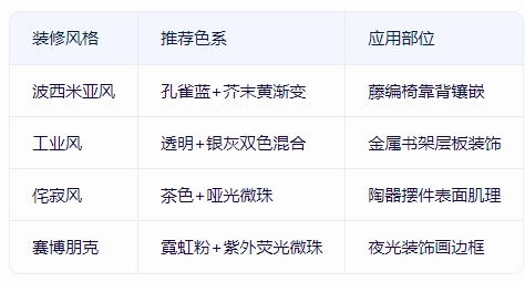 色彩表現(xiàn)力:可定制高飽和度色相(如克萊因藍(lán)、祖母綠),或漸變混合色(如鎏金+琥珀)